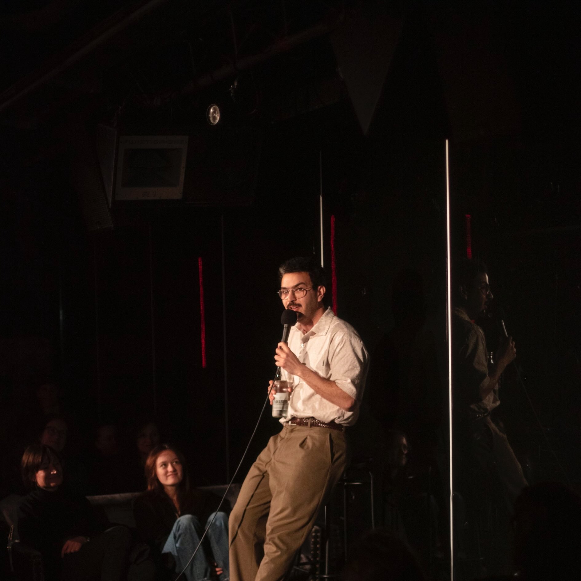 Il nous parle de la genèse de son texte, qui traite du succès, de l’échec, de l’égo. Yacine nous confie que c’est le résultat de trois ans d’introspection qui lui ont permis d’arriver au projet final de son spectacle. Il nous raconte aussi son trip aux champignons hallucinogènes, encadré par sa psy… tout un programme. Il a conçu la structure de son spectacle en trois parties suite à cette expérience, d’abord égotrip, puis déconstruction de l’égo et enfin accepter la normalité. Côté projets, il aime particulièrement les sketchs vidéos comme la série « Bon ben voilà » à laquelle il a participé. Il aimerait beaucoup refaire ça et continuer à tourner son spectacle.